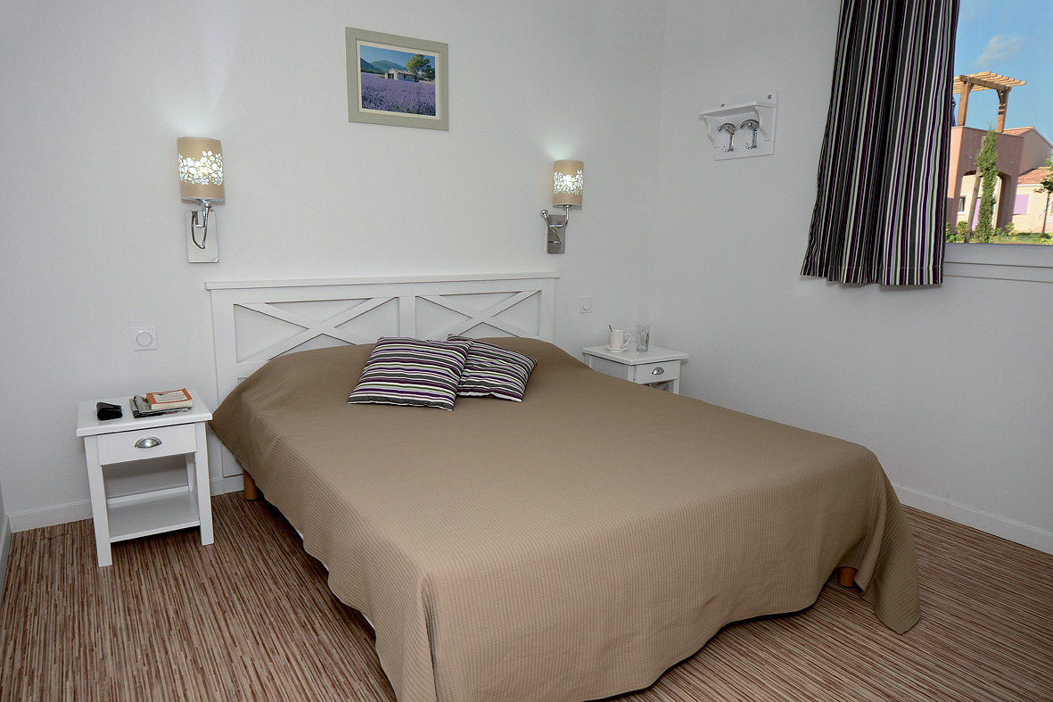 45 m² - 1 ložnice s manželskou postelí, 1 ložnice se 2 samostatnými lůžky, obývací pokoj s kuchyňským koutem a rozkládacím gaučem pro 2 osoby (možno i typ "šuplík"), 2x sociální zařízení (1x se sprchou, 1x s vanou), terasa; většina apartmánů je patrových