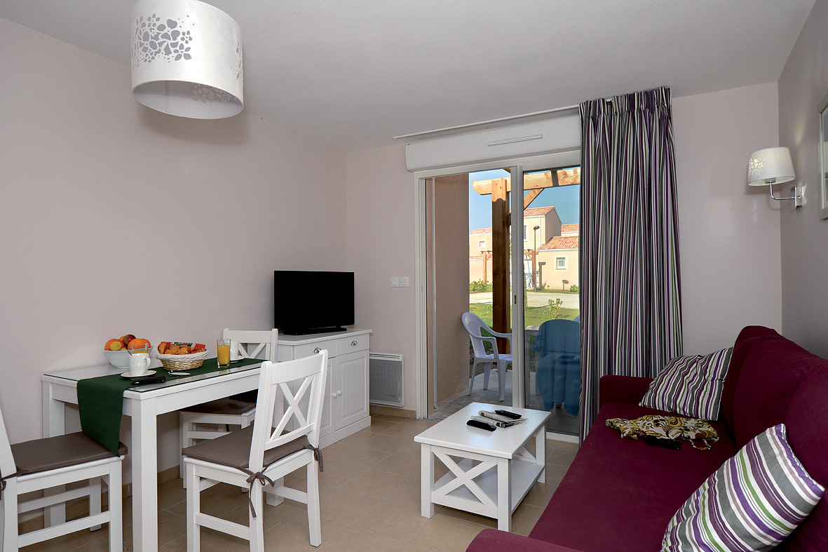 30 m² - ložnice s manželskou postelí, obývací pokoj s kuchyňským koutem a rozkládacím gaučem pro 2 osoby (možno i typ "šuplík"), sociální zařízení se sprchou či vanou, terasa