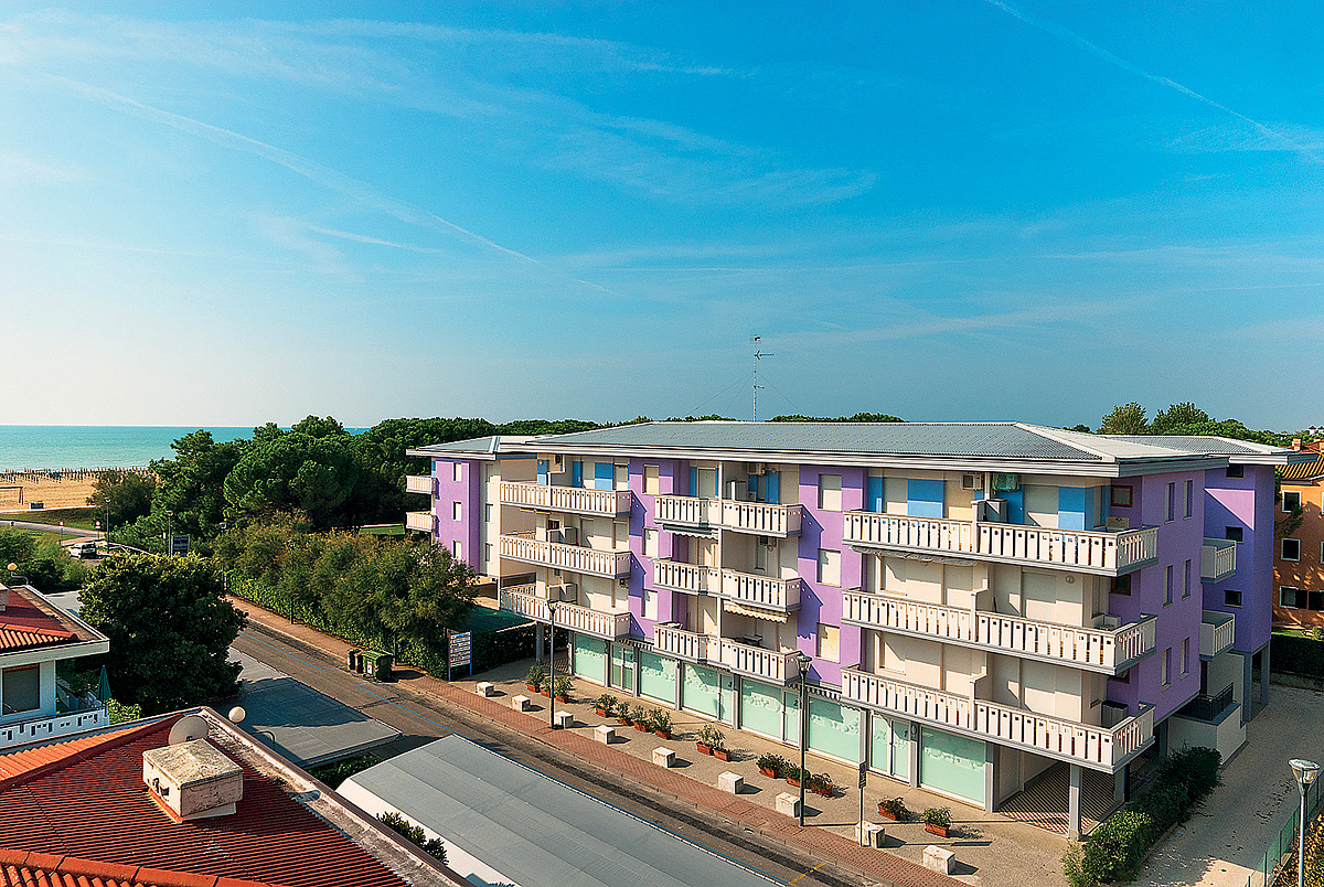 dva čtyřpodlažní apartmánové domy (Est a Ovest) v první linii od pláže