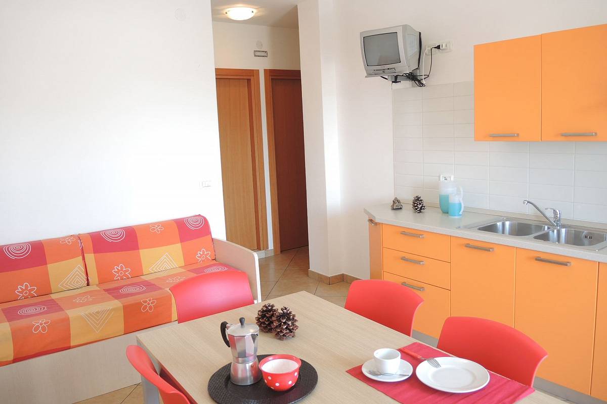 45 až 50 m² - 1 ložnice s manželskou postelí, 1 ložnice se 3 samostatnými lůžky, obývací pokoj s kuchyňským koutem a rozkládacím gaučem (možno i typ „šuplík“) pro 2 osoby, sociální zařízení se sprchou, balkon