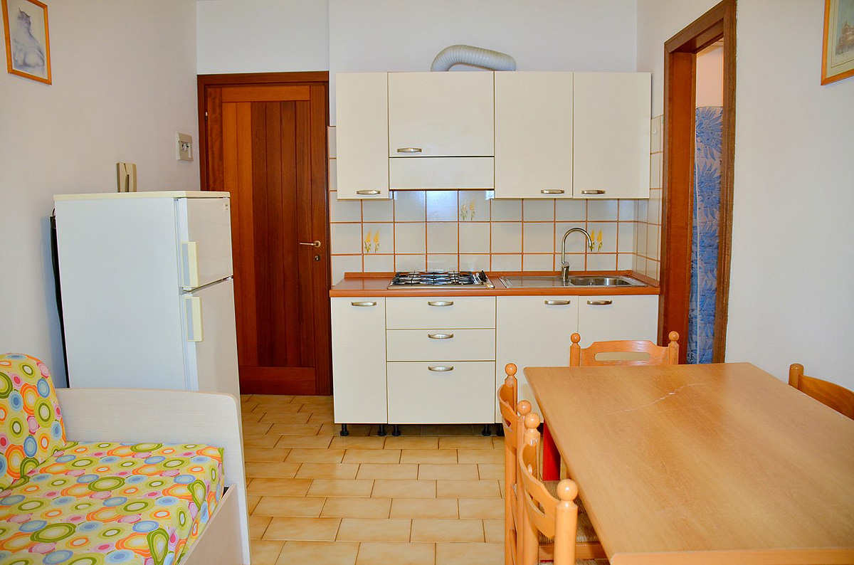 35 m² - 1 ložnice s manželskou postelí a případně 1 samostatným lůžkem, obývací pokoj s kuchyňským koutem a rozkládacím gaučem (možnost typ "šuplík") pro 2 osoby, sociální zařízení se sprchou, 2 balkony