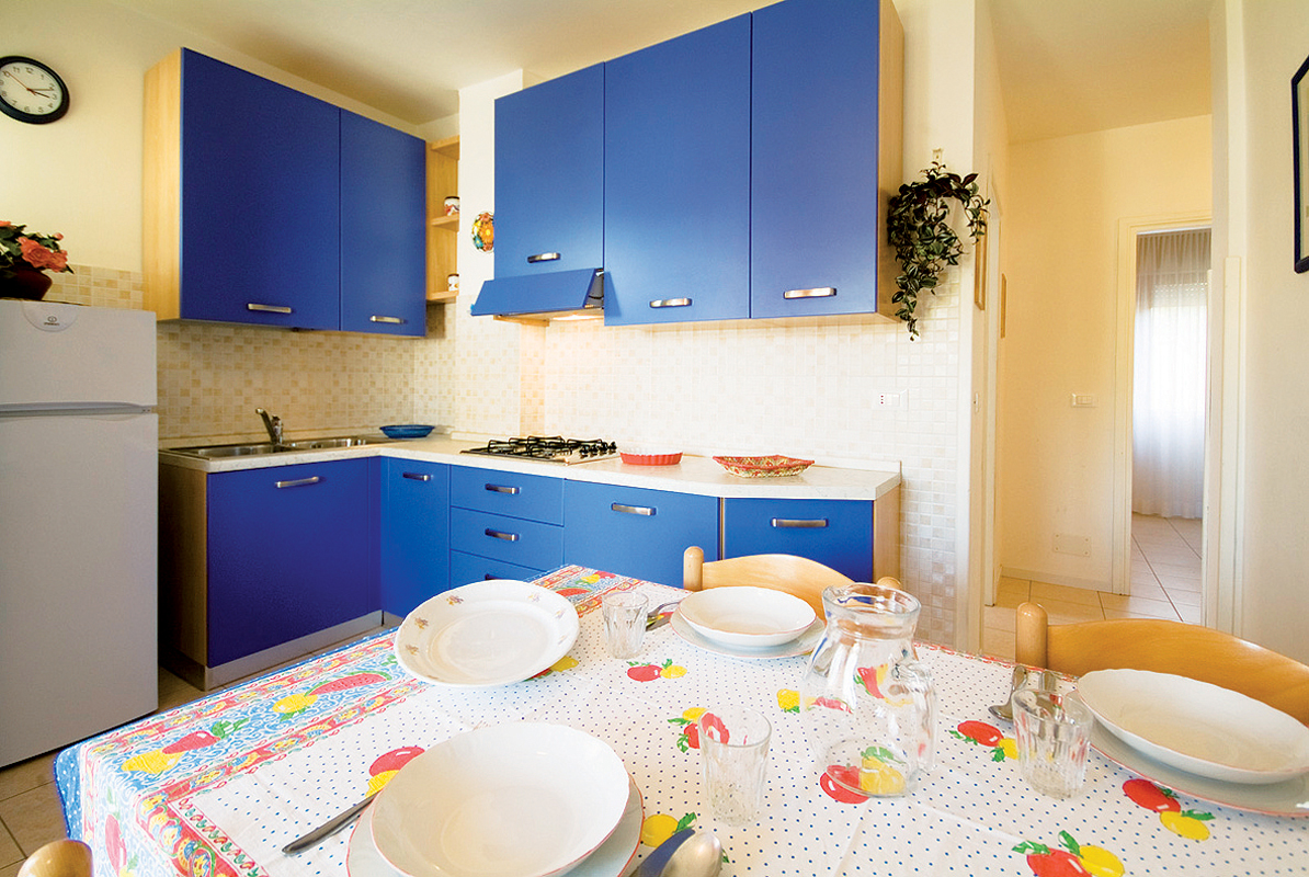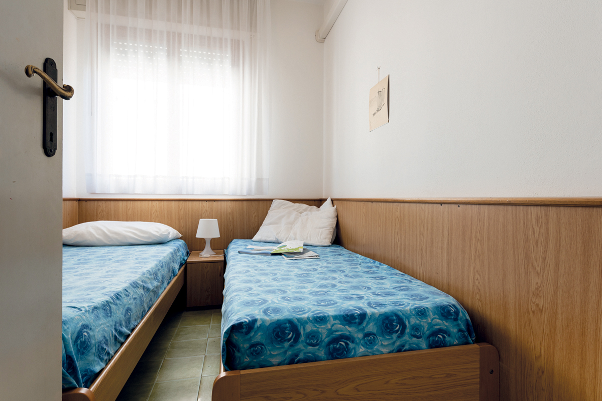 45 až 50 m² - 1 ložnice s manželskou postelí, 1 ložnice se 2 samostatnými lůžky, obývací pokoj s kuchyňským koutem a rozkládacím gaučem (možno i typ „šuplík“) pro 1 či 2 osoby, sociální zařízení se sprchou, balkon (u vilky možnost předzahrádky); typ trilo 6+ / trilo 6++ s výhledem na moře či umístění ve vilce