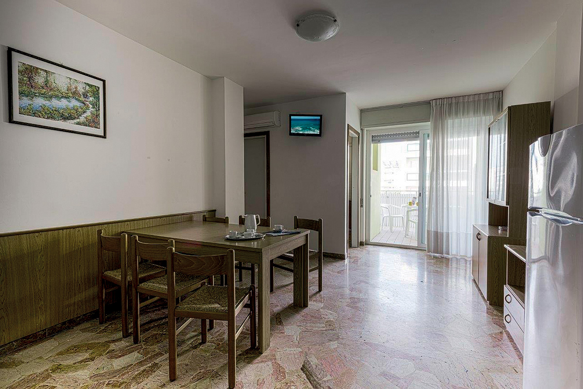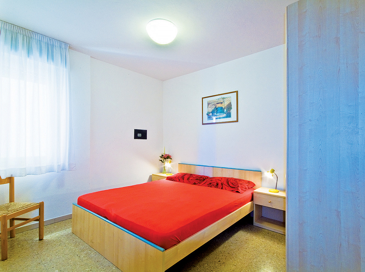 35 m² - 1 ložnice s manželskou postelí a 1 samostatným lůžkem či 3 samostatnými lůžky, obývací pokoj s kuchyňským koutem a případně rozkládacím gaučem (možnost typ "šuplík") pro 2 osoby či nika (výklenek) s palandou,, sociální zařízení se sprchou, balkon; typ bilo 5AC s klimatizací