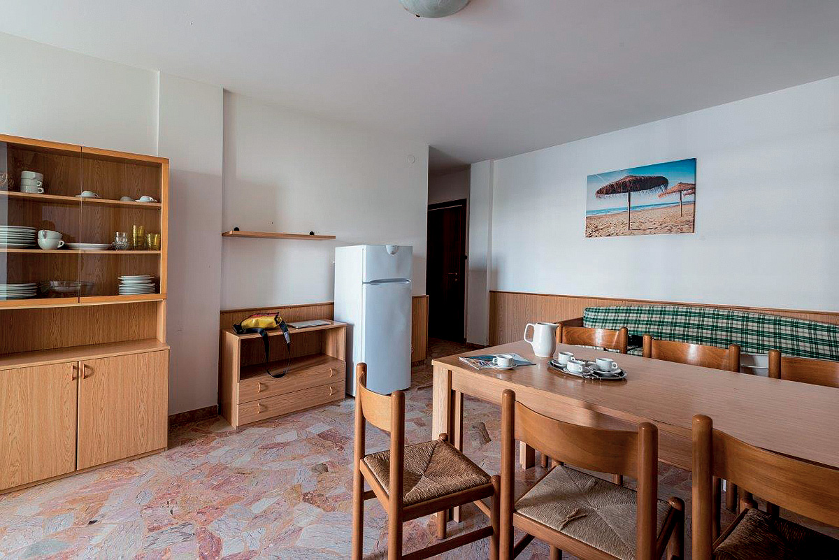 45 m² - 1 ložnice s manželskou postelí, 1 ložnice se 2 samostatnými lůžky či palandou, obývací pokoj s kuchyňským koutem a rozkládacím gaučem pro 1 či 2 osoby (možnost typ "šuplík"), sociální zařízení se sprchou, balkon