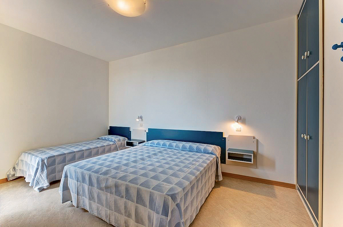 55 m² - 1 ložnice s manželskou postelí, 1 ložnice se 2 samostatnými lůžky, obývací pokoj s kuchyňským koutem a rozkládacím gaučem pro 1 osobu, sociální zařízení se sprchou, 2x terasa
