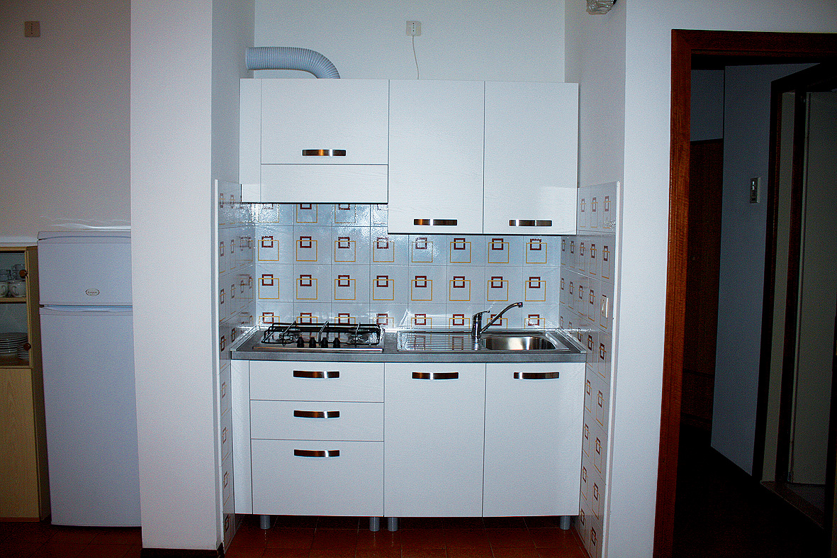 trilo 6/8 - 40 až 50 m² - 1 ložnice s manželskou postelí , 1 ložnice se 2 samostatnými lůžky a palandou, obývací pokoj s rozkládacím gaučem pro 2 osoby (možnost typ "šuplík") a kuchyňský kout v rámci obývacího pokoje, sociální zařízení se sprchou, balkon