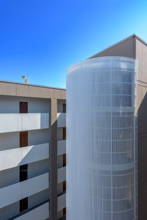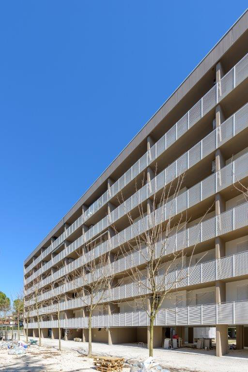dva propojené šestipodlažní apartmánové domy v klidné části Lido dei Pini