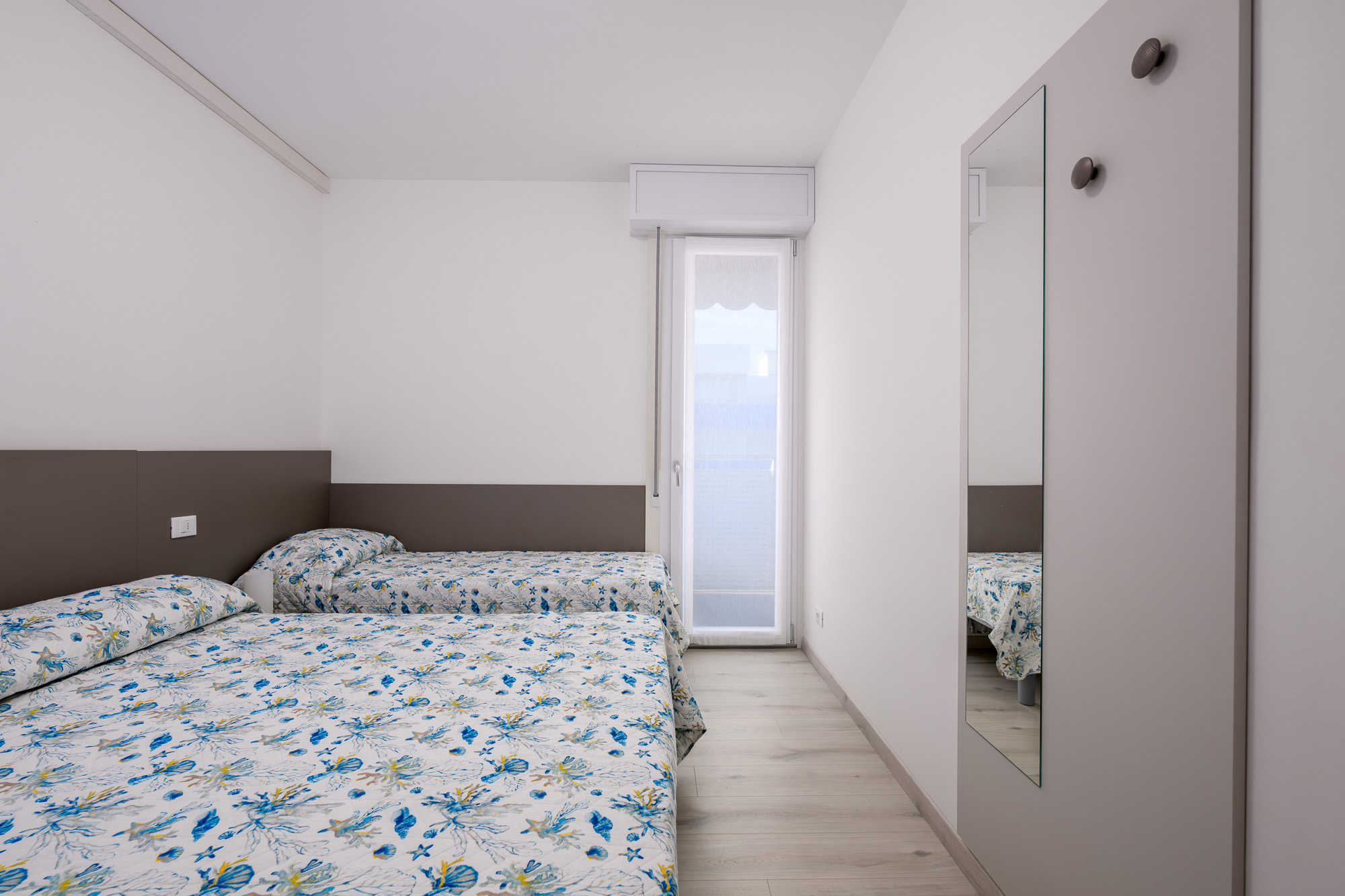 45 až 50 m² - 2 dvoulůžkové ložnice, 1 ložnice manželskou postelí a 1 samostatným lůžkem, velký obývací pokoj s kuchyňským koutem, mikrovlnkou, myčkou a gaučem, 2 sociální zařízení se sprchou, 2 balkony