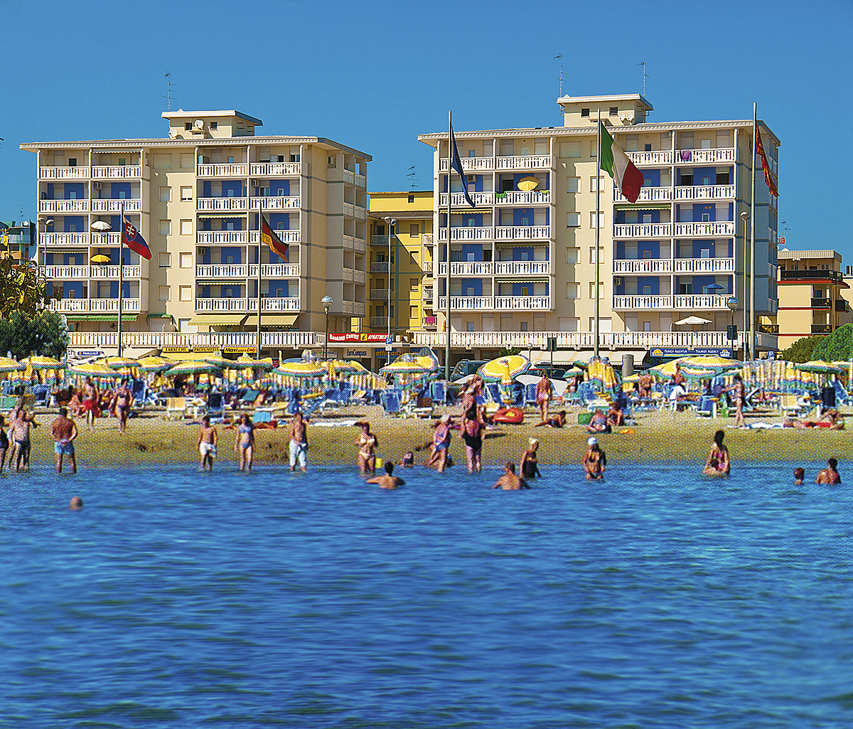 dokonalá poloha v centrální části Bibione Spiaggia – u promenády, obchodní zóny, barů a restaurací a současně jen přes náměstí od pláže