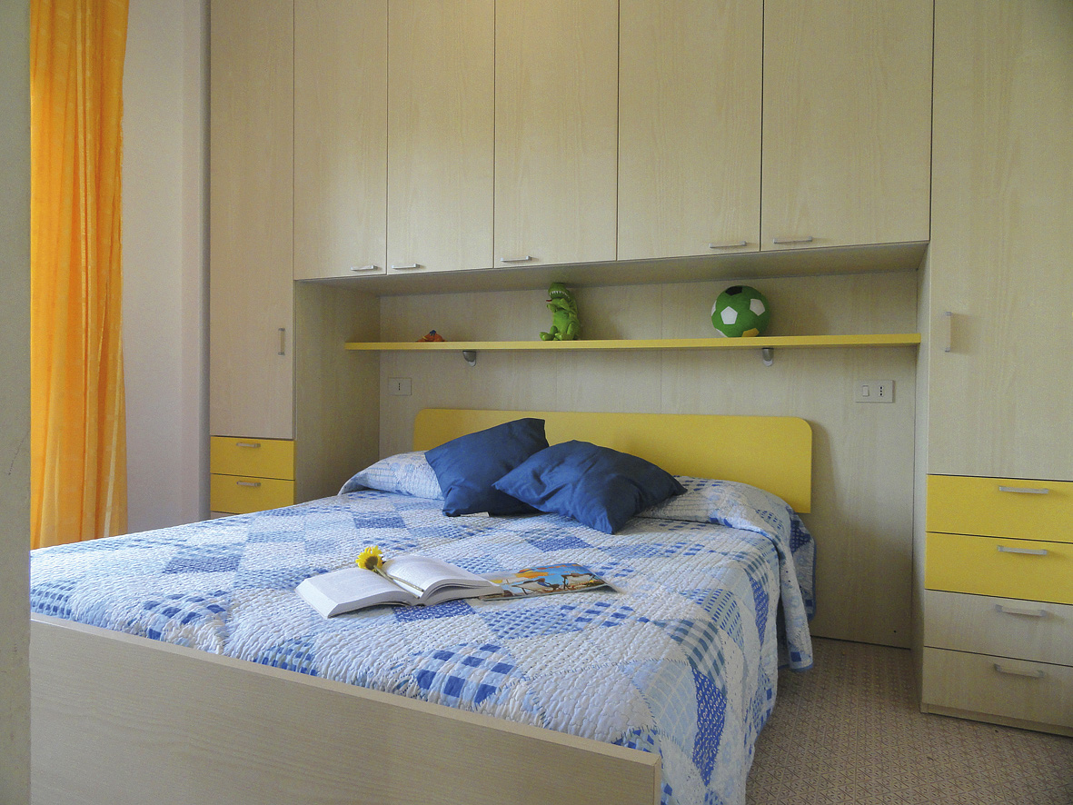 40 m² 1 ložnice s manželskou postelí, 1 ložnice se 2 samostatnými lůžky, obývací pokoj s kuchyňským koutem a rozkládacím gaučem pro 1 osobu, sociální zařízení se sprchou, balkon