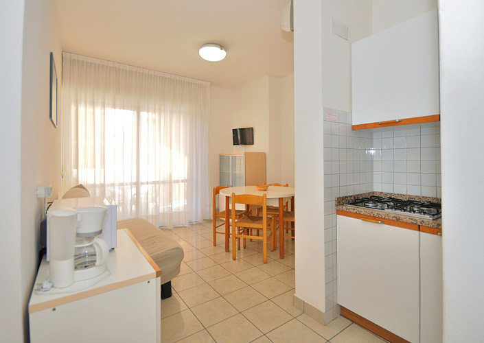 obědy jsou podávány v restauraci (v centrální části Bibione); na výběr je z menu. Servírován je také zeleninový salát, cena zahrnuje též 0,5 l vody či 0,25 l jiného nealkoholického nápoje nebo stolního vína