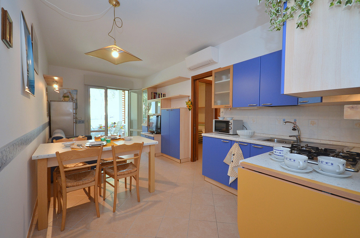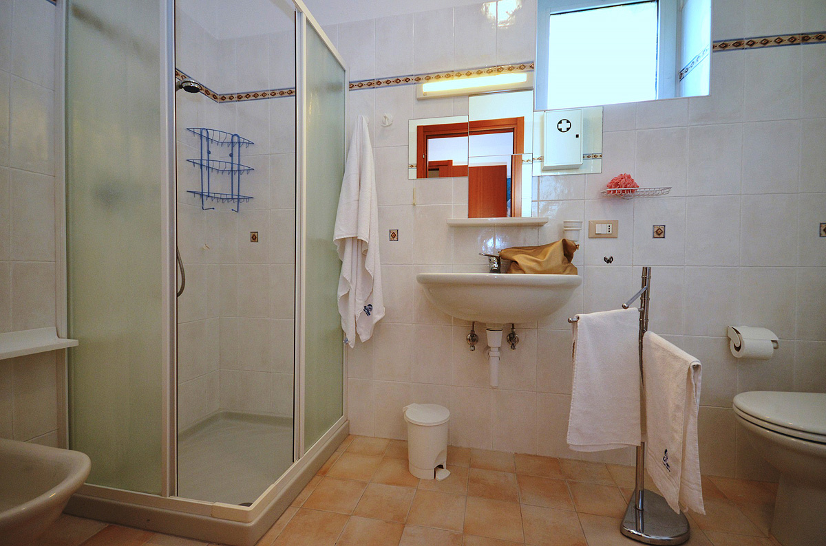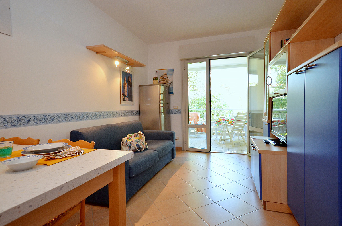 35 m² - 1 ložnice s manželskou postelí a 1 samostatným lůžkem, obývací pokoj s kuchyňským koutem a rozkládacím gaučem pro 2 osoby, sociální zařízení se sprchovým boxem, balkon; typ bilo 5+ s garážovým stáním; typ bilo 5Z v přízemí s předzahrádkou a krytou terasou směrem na bazén; typ bilo 5Z+ stejný jako typ bilo 5Z, navíc garážové stání