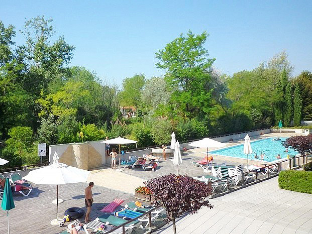 bazén, dětský bazének, sluneční terasa s lehátky; na pláži též plážový servis (1 slunečník a 2 lehátka)