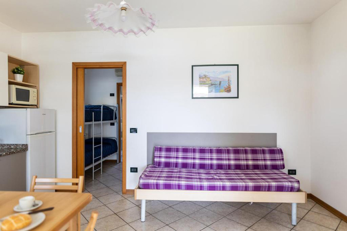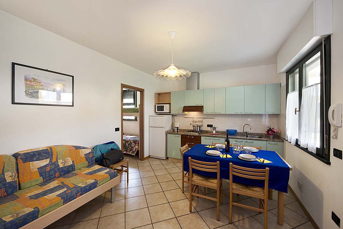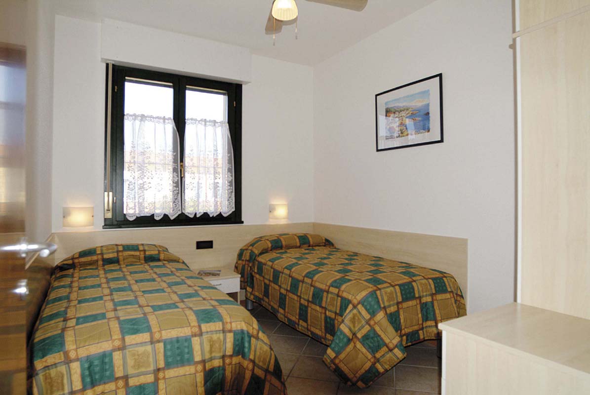 55 m² 1 ložnice se dvěma postelemi, které lze spojit a skládací přistýlka, 2. ložnice se dvěma samostatnými lůžky, obývací pokoj s kuchyňským koutem a gaučem pro 1 osobu, sociální zařízení se sprchovým boxem, terasa s předzahrádkou či balkon; apartmány se nachází buď v přízemí nebo v 1. patře