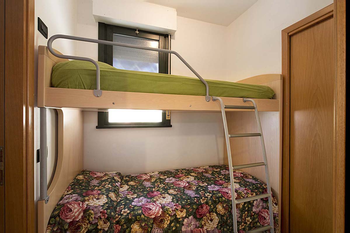 40 m² 1 ložnice s manželskou postelí, obývací pokoj s kuchyňským koutem, gaučem pro 1 osobu a uzavíratelnou kabinou s palandou, sociální zařízení se sprchou, terasa s předzahrádkou