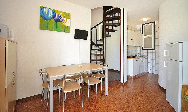 32 m² - 1 ložnice s manželskou postelí a 1 samostatným lůžkem, obývací pokoj s kuchyňským koutem a rozkládacím gaučem pro 2 osoby, sociální zařízení se sprchou, menší terasa a předzahrádka; některé apartmány jsou dvoupodlažní, kdy na 2. podlaží je ložnice a sociální zařízení
