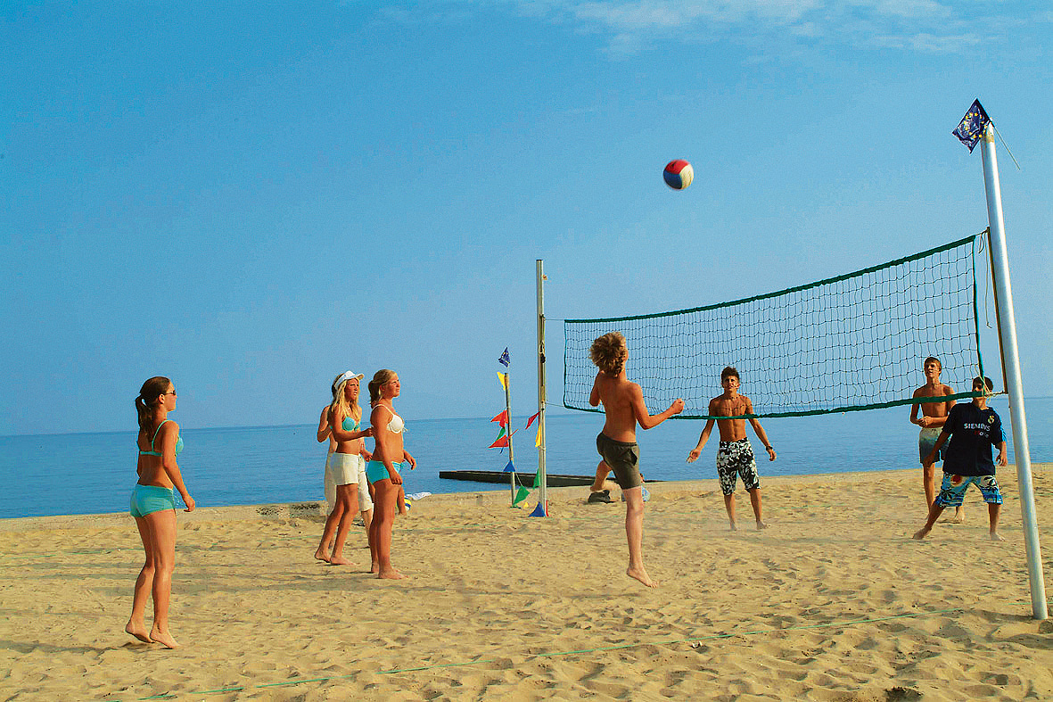 Na soukromých plážích si lze zaplatit slunečníky a lehátka, k dispozici jsou zde bary, sociální zařízení, sprchy a u některých i restaurace, sportovní zázemí (hřiště na míčové sporty, lodičky, šlapadla atd.), dětská hřiště, animační programy, plavčíci apod. Stabilita některých pláží a klidná hladina moře je zabezpečena také betonovými moly vybíhajícími několik desítek metrů do moře.