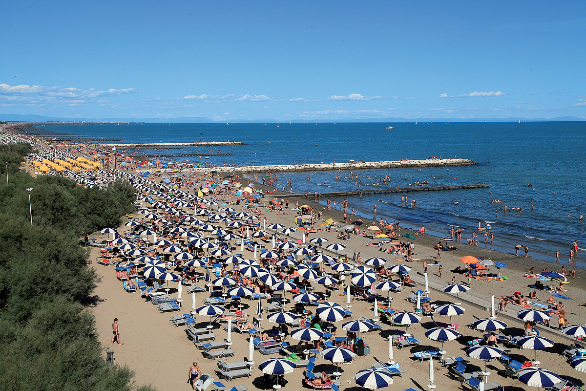 Ale pojďme již k tomu pro většinu z Vás podstatnějšímu, tedy k plážím, infrastruktuře a ubytování. Místní neobyčejně krásná pláž je tvořena jemným zlatavým pískem, pozvolna se sklání k mořské hladině a ve večerních hodinách neodolatelně láká k pozorování romantických západů slunce. Zcela uchvacující je ale i rušné „lungomare“, pobřežní promenáda zdobená sochami umělců z mnoha zemí, kterou si prostě nemůže nechat ujít žádný z místních rekreantů. Nadmíru pestrá je ale i předkládaná paleta zábavy a sportu, ze které zmiňme alespoň opravdu vydařený vodní park Aquafollie. Přibližně 10 kilometrů dlouhé letovisko se rozděluje do několika, místní autobusovou dopravou vzájemně propojených částí – Ponente, Levante (centrum Caorle), Porto S. Margherita, nově vybudovaná část Altanea a Duna Verde.