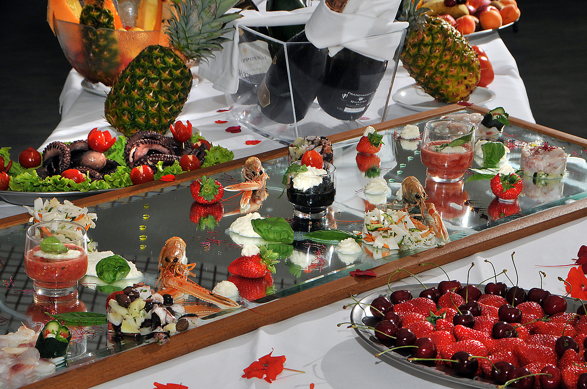 fakultativně - tříchodové menu s výběrem ze 2 variant, bohatý salátový a zeleninový bufet, dezerty; nápoje za popletk