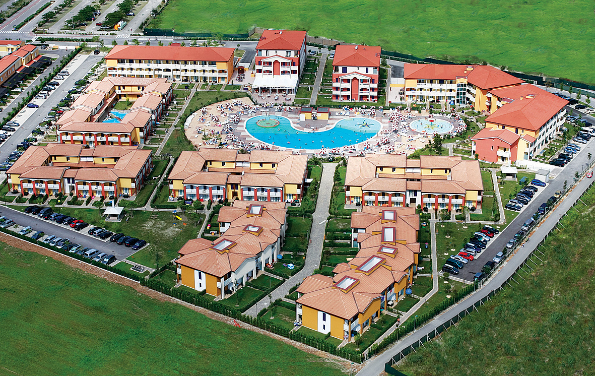 rozsáhlý komplex dvoupodlažních apartmánů v rámci řadových vilek (označení "V"), dvoupodlažních apartmánů v rámci třípodlažních residencí (označení "Z") a jednopodlažních apartmánů v rámci tří a čtyřpodlažních residencí (označení "R"), bazénový areál a prostor s parkovou úpravou
