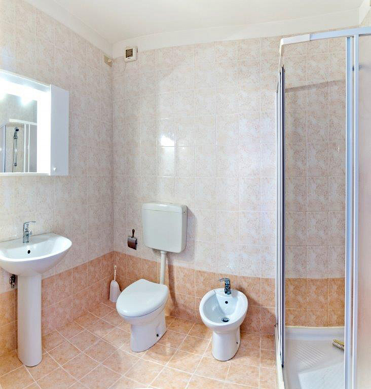 40 m² - obývací pokoj s kuchyňským koutem a rozkládacím gaučem pro 2 osoby či manželská postel a dalším 1 či 2 rozkládacími gauči pro 1 či 2 osoby, sociální zařízení se sprchou, balkon či terasa