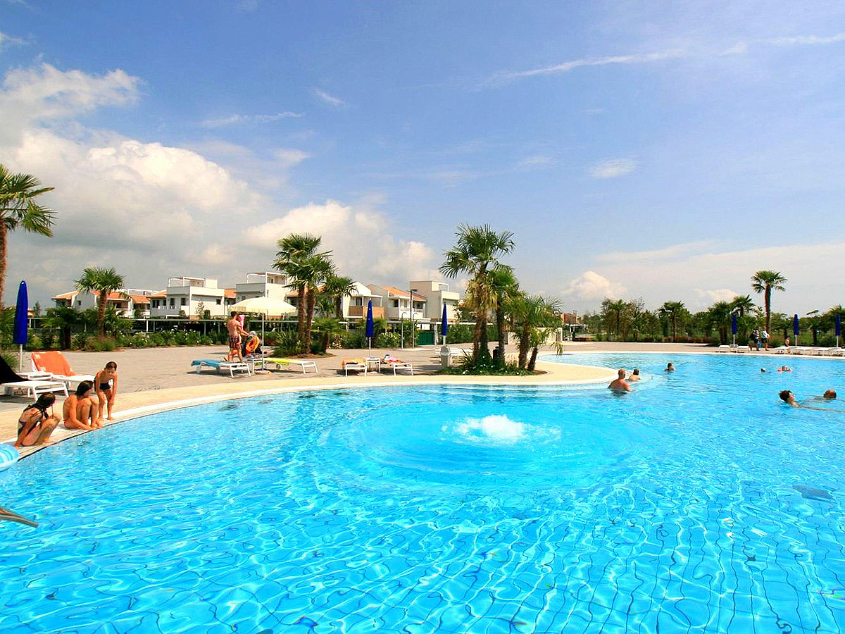 bazén atypického tvaru s vířivkou a dětským bazénkem, sluneční terasou, lehátky a slunečníky, na pláži též plážový servis (1 slunečník a 2 lehátka / apartmán) v ceně, půjčovna kol*; zdarma vstup do městského bazénu, tělocvičny Technogym a sportovního centra (beach volejbalové kurty, fotbalové hřiště)