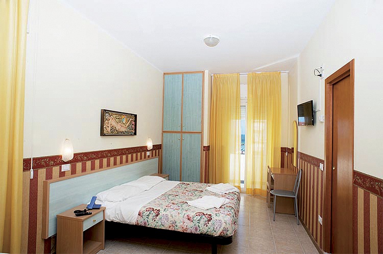 pokoj s manželskou postelí či 2 samostatnými lůžky, sociální zařízení se sprchou, balkon s bočním výhledem na moře; 3. lůžko pevné či formou přistýlky