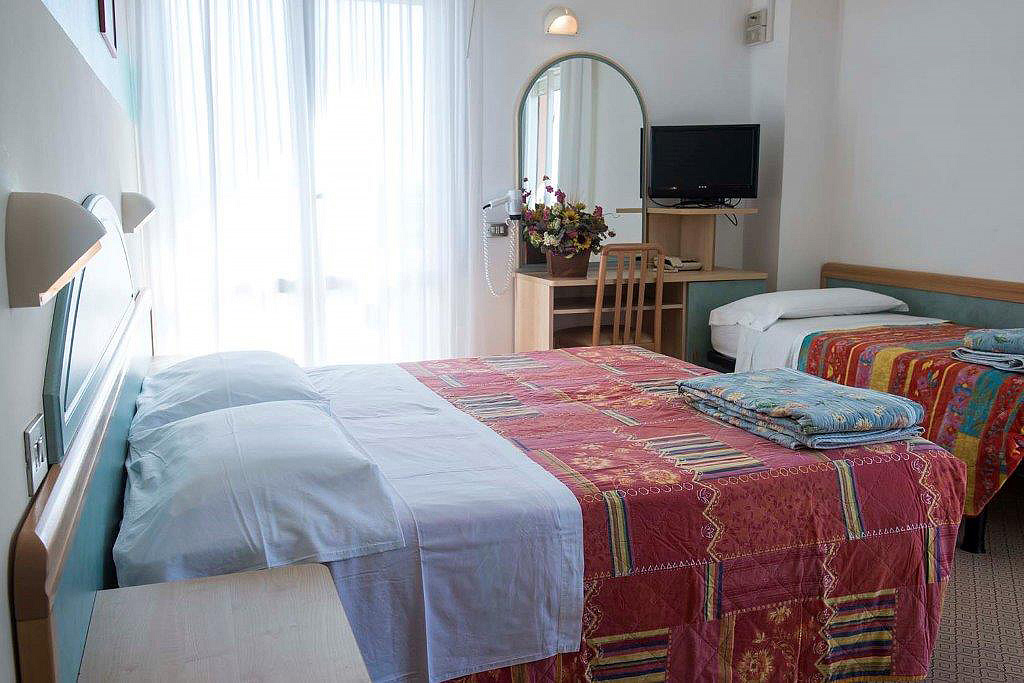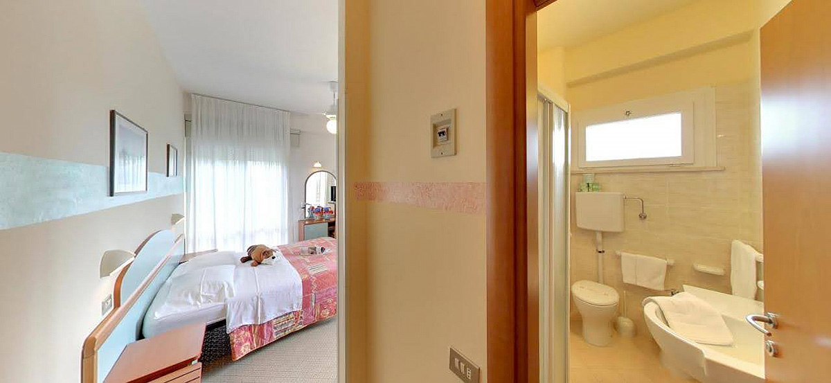 pokoj s manželskou postelí či 2 samostatnými lůžky, sociální zařízení se sprchou, balkon; 3. a 4. lůžko formou přistýlky či palandy