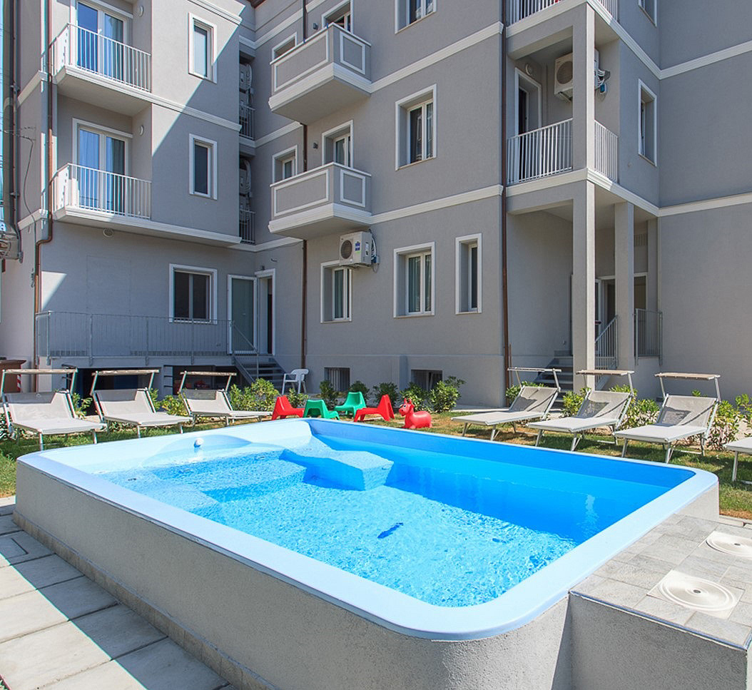 zahrada s vířivkou, plážový servis (1 slunečník a 2 lehátka / pokoj v ceně), půjčovna kol (do vyčerpání kapacity)