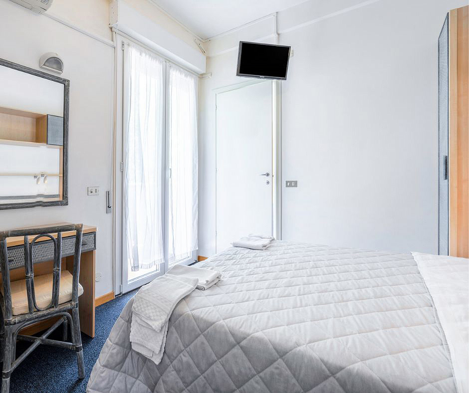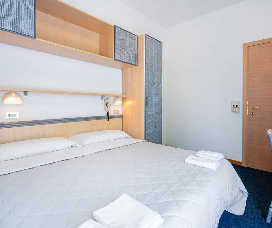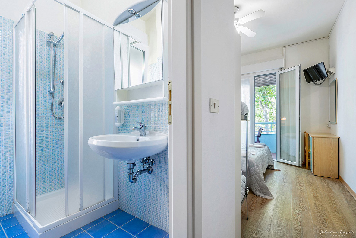 pokoj s manželskou postelí či 2 samostatnými lůžky, sociální zařízení se sprchou, na vyžádání balkon, 3. a 4. lůžko formou přistýlky či palandy