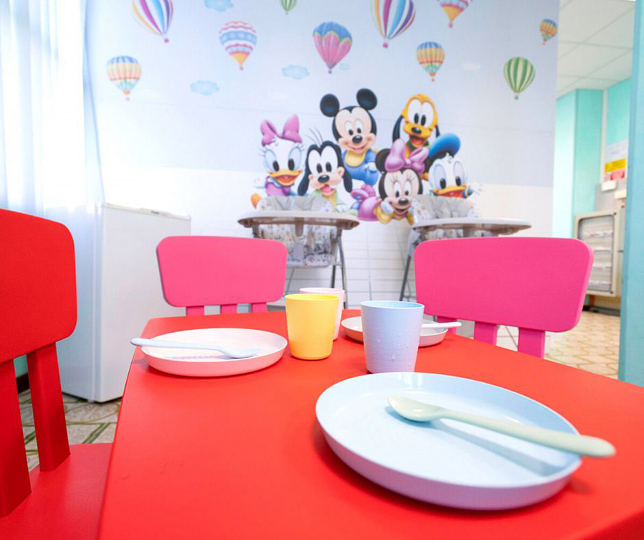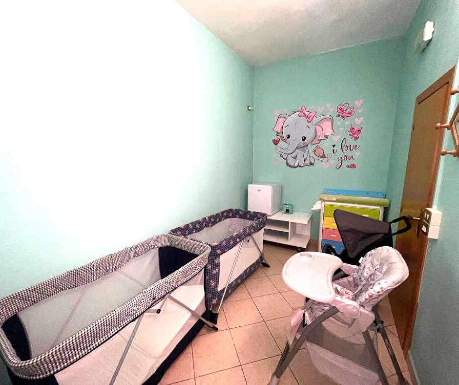 dítě do nedovršených 3 let za povinný poplatek (baby set) zahrnující postýlku a dětskou stravu, dále na vyžádání vaničku, ohřívač lahví, přebalovací pult, noční světlo, nočník, redukci na WC, příp. kočárek