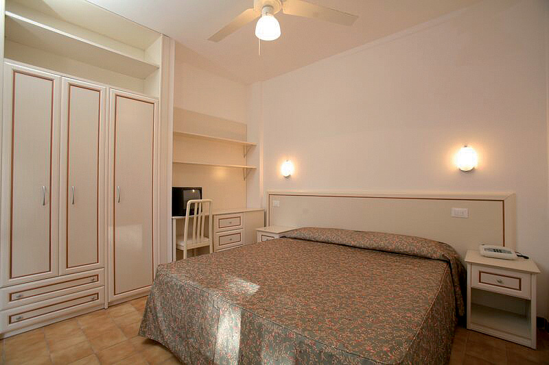 pokoj s manželskou postelí či 2 samostatnými lůžky, sociální zařízení se sprchou, balkon s výhledem na moře; 3. lůžko pevné či formou přistýlky, 4. lůžko formou palandy; pokoje se nachází v hotelové budově