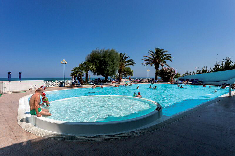 bazén s dětským bazénkem a lehátky, plážový servis (od 3. řady, 1 slunečník, 1 lehátko a křesílko / pokoj v ceně), stolní tenis, plážový volejbal, multifunkční hřiště