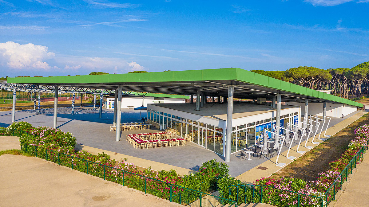 recepce / restaurace / pizzerie / bar / wi-fi připojení k internetu, dětské hřiště, herna*, animační programy (15.06. - 30.08.), vyhrazená parkovací stání, pračky a sušičky na žetony*, market, bazar, trafika, minibus na pláž*, minibus* (stanice Castel Fusano - vlak do Říma, archeologický park Ostia Antica)