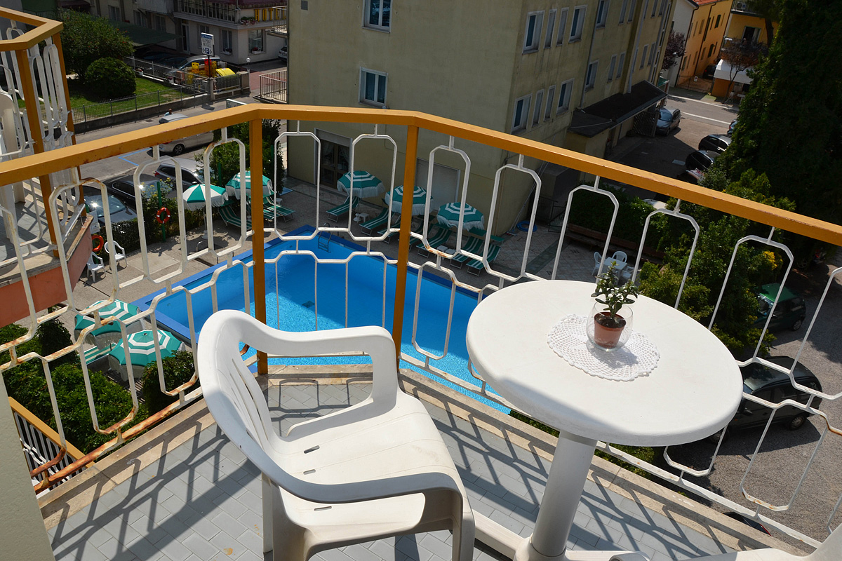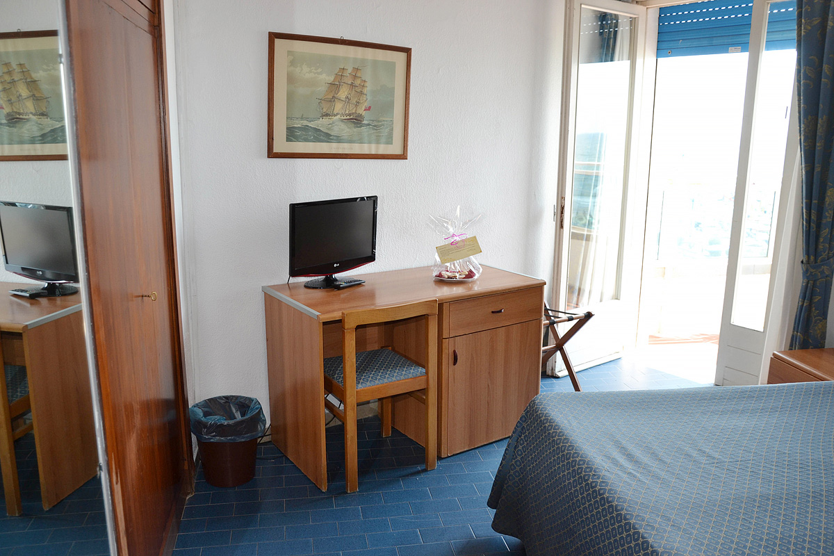 pokoj s manželskou postelí či 2 samostatnými lůžky, sociální zařízení se sprchou či vanou, balkon s přímým výhledem na moře; 3. a 4. lůžko formou přistýlky či palandy; pokoje se nachází v hotelu Heron