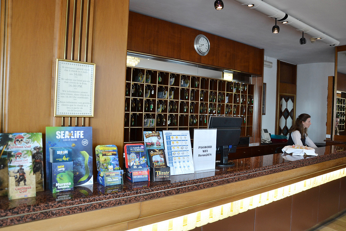recepce, restaurace (pouze v hotelu Heron), bar, výtah, parkoviště (omezená kapacita, nelze rezervovat předem), wi-fi připojení k internetu