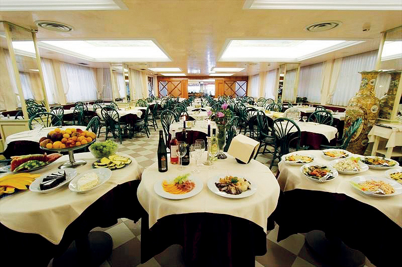 formou bufetu studených a teplých předkrmů, 3 až 4 hlavních jídel, příloh, dezertů, ovoce a sýrů; nápoje za poplatek