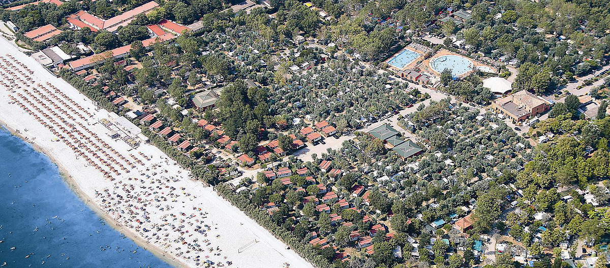 prázdninový areál s pěkným bazénovým komplexem a přímým vstupem na pláž