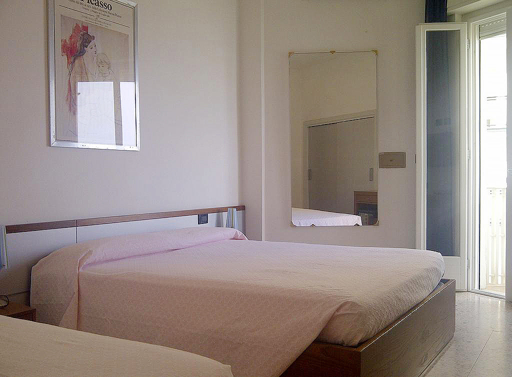 pokoj s manželskou postelí či 2 samostatnými lůžky, sociální zařízení se sprchou, balkon s bočním výhledem na moře; 3. a 4. lůžko formou přistýlky či palandy