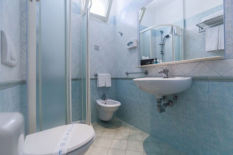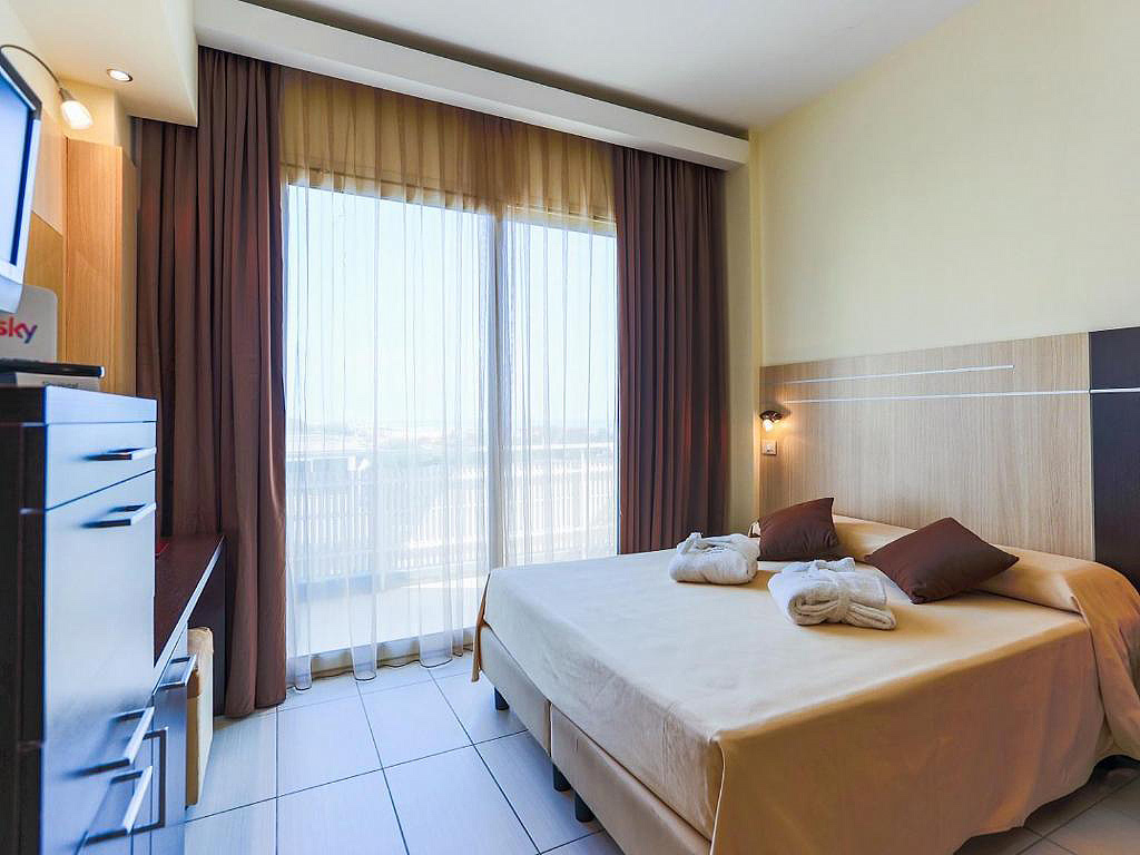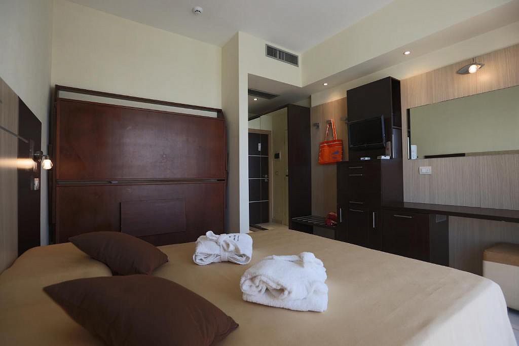 pokoj s manželskou postelí či 2 samostatnými lůžky, sociální zařízení se sprchou, balkon (některé s výhledem na moře); 3. lůžko pevné či formou přistýlky, 4. lůžko vždy palanda