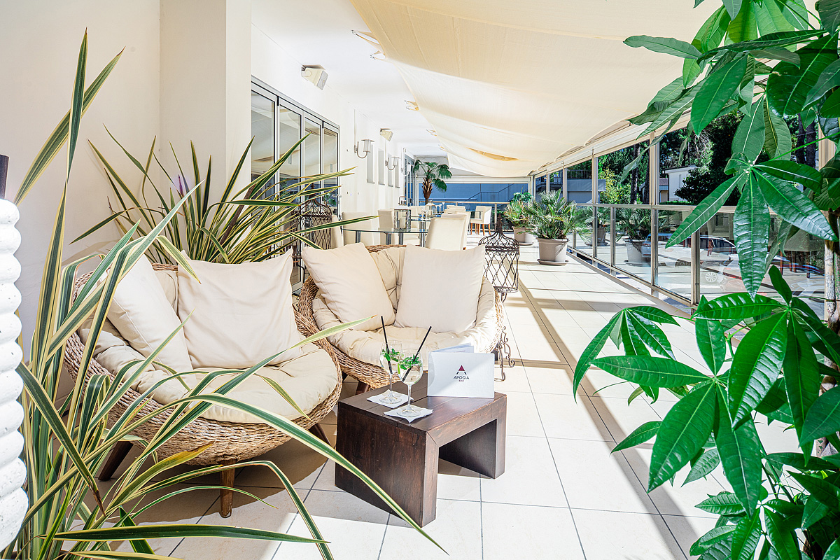 recepce / lobby, restaurace, vnitřní a venkovní bar, wi-fi připojení k internetu, výtahy, venkovní terasa s posezením, fitness, vyhrazené parkoviště (počet míst omezen; nelze rezervovat předem), zahrada; většina společných prostor hotelu je klimatizovaná