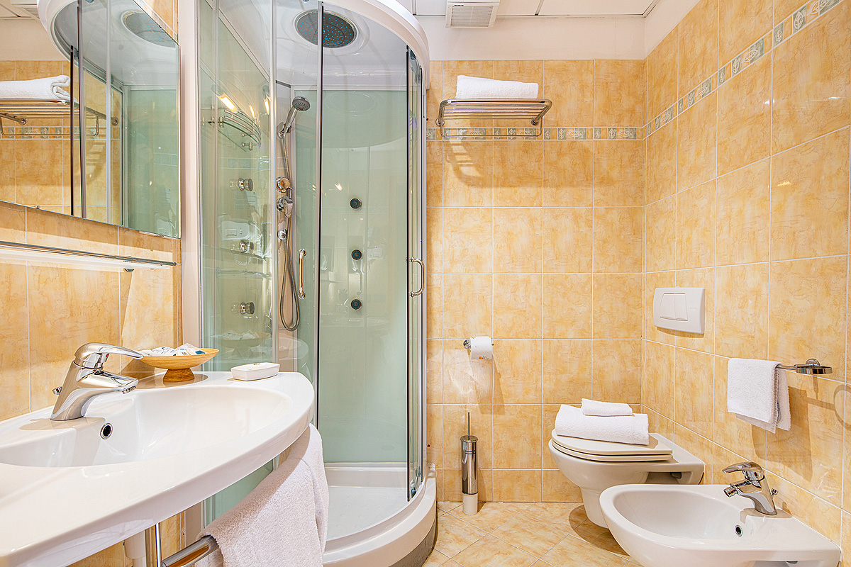 15 až 18 m² - pokoj s manželskou postelí či 2 samostatnými lůžky, sociální zařízení se sprchou, balkon; 3. lůžko formou přistýlky
