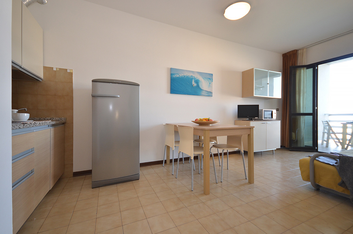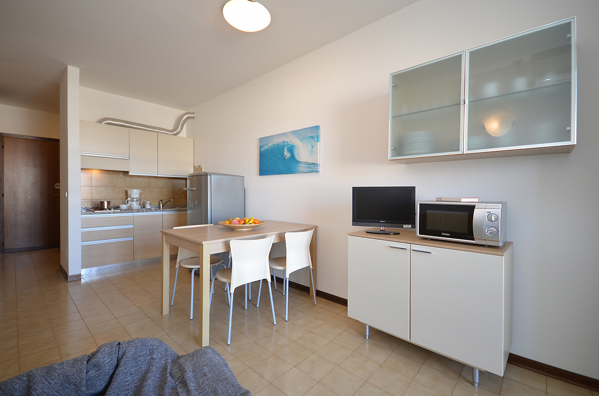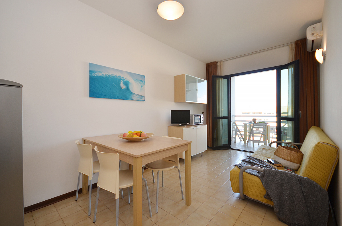 mono 3/4 / mono 3/4AC - 30 m² - obývací pokoj s kuchyňským koutem a 1 – 2 rozkládacími gauči pro 1 až 2 osoby, případně 2 samostatná lůžka, sociální zařízení se sprchou, balkon