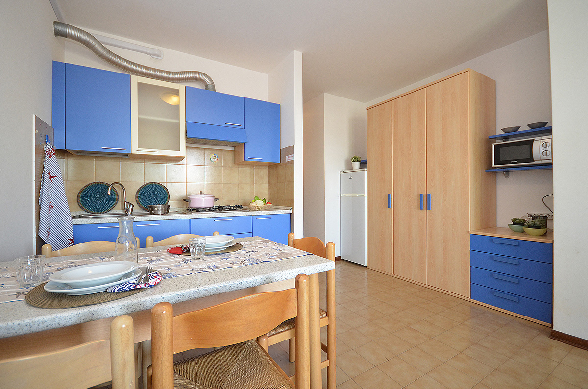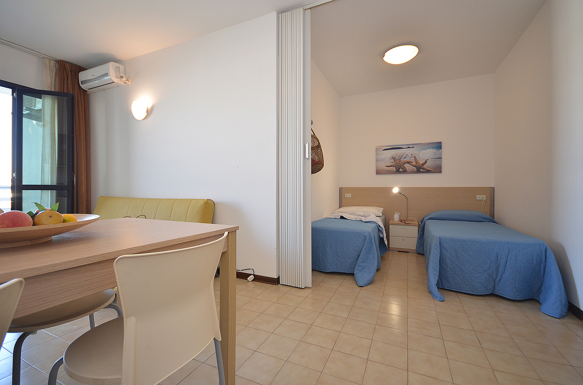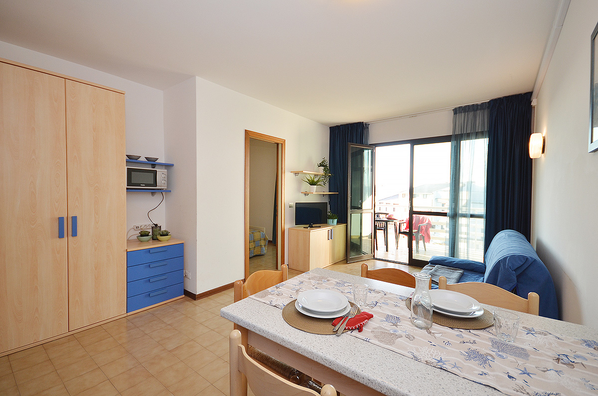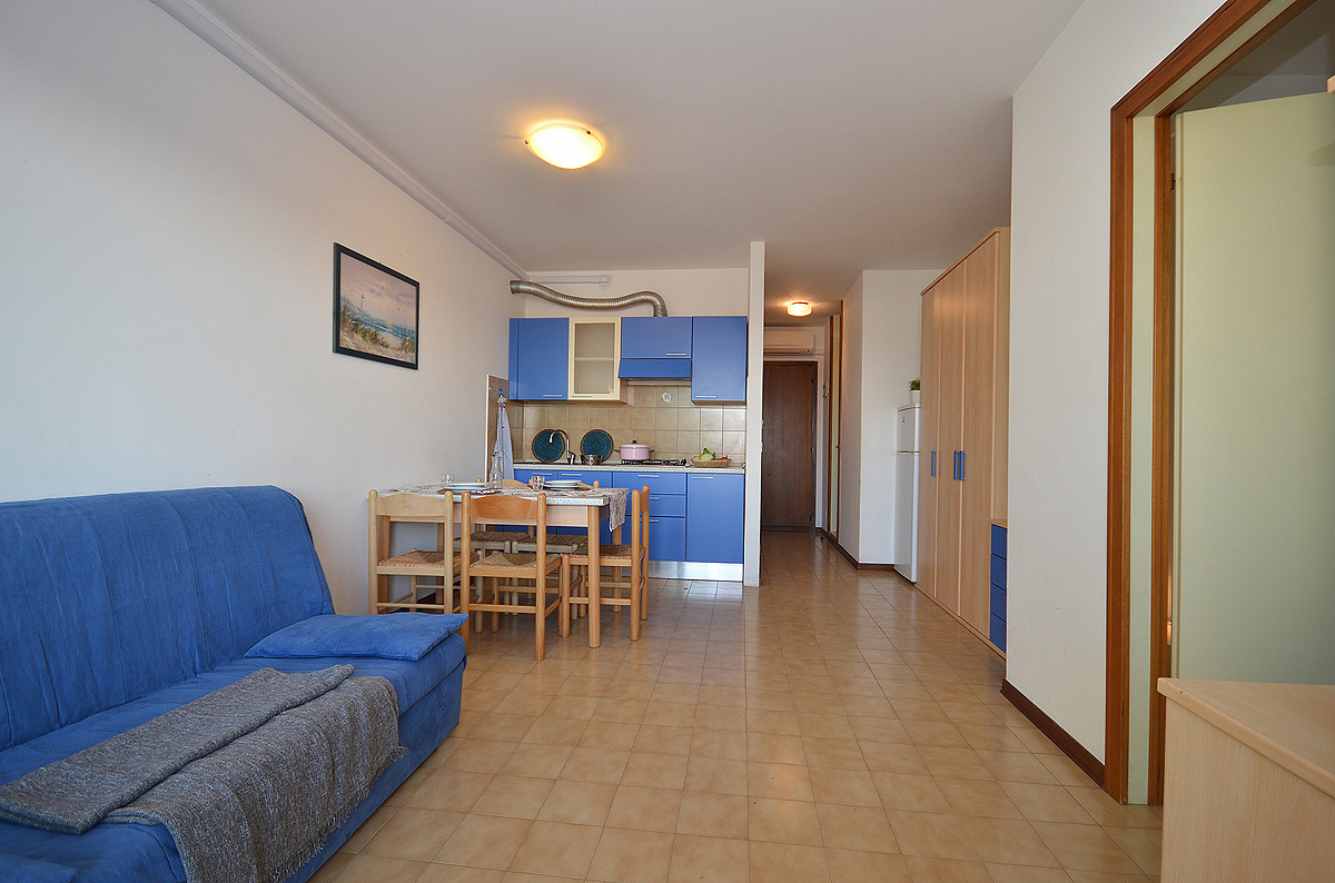 bilo 3/4/5 / bilo 3/4/5AC - 34 m² - 1 ložnice s manželskou postelí a případně jedním samostatným lůžkem v ložnici či obýváku, obývací pokoj s kuchyňským koutem a rozkládacím gaučem pro 2 osoby, sociální zařízení se sprchou, balkon