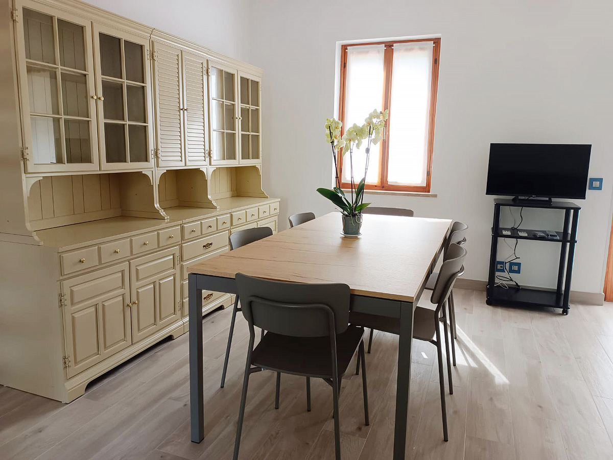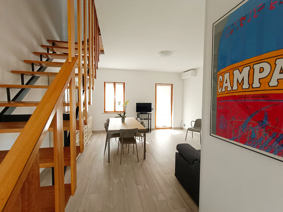 trilo 6 - přízemí: obývací pokoj s jídelním koutem a rozkládacím gaučem pro 2 osoby, samostatná kuchyň, zařízená terasa. 1.patro: 1 ložnice s manželskou postelí, 1 ložnice se 2 samostatnými lůžky, sociální zařízení se sprchou, balkon