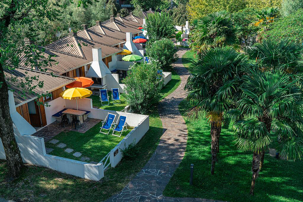 rozsáhlý komplex jednopodlažních bungalovů, bazénový areál, sportovní hřiště i prostor s parkovou úpravou