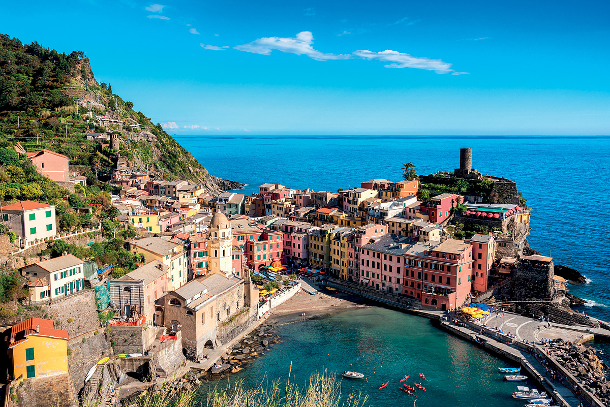 V provincii La Spezia na Italské riviéře, v její východní části nazývané Riviera di Levante, takřka na hranici s Toskánskem, leží pitoreskní oblast Cinque Terre. Jde o jeden z nejmalebnějších koutů Itálie – pět obcí – Riomaggiore, Manarola, Corniglia, Vernazza a Monterosso al Mare – je nalepeno svými terasovitě postavenými domy na skalních útesech Ligurských Apenin nad Ligurským mořem jako vlaštovčí hnízda.
