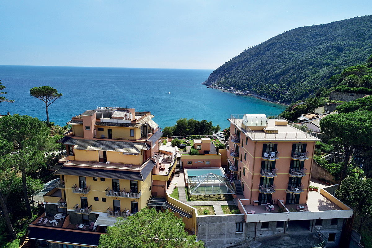menší hotelový a apartmánový komplex s krásným výhledem na moře a v pěší dostupnosti od pláže