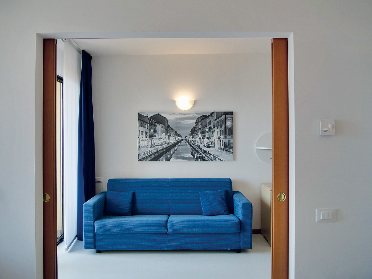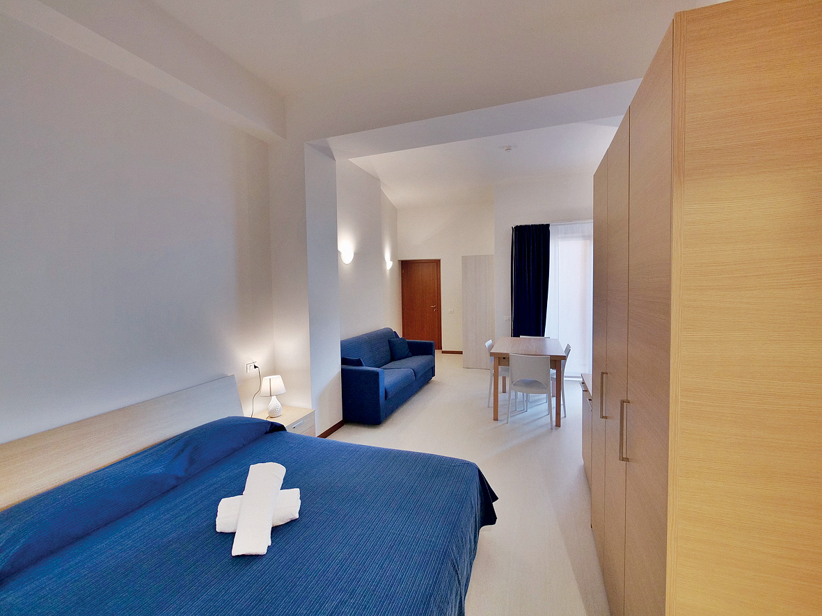 17 až 20 m² - obývací pokoj s kuchyňským koutem, rozkládacím gaučem pro 2 osoby a rozkládacím gaučem pro 1 osobu, sociální zařízení se sprchou či vanou, balkon s výhledem na moře