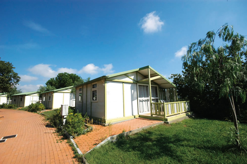 42 m² - ložnice s manželskou postelí, ložnice s 2 samostatnými lůžky, obývací pokoj s rozkládacím gaučem a kuchyňským koutem, sociální zařízení, veranda či předzahrádka